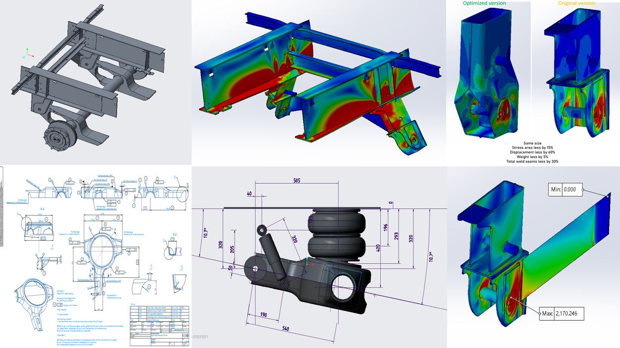 • Design, assemble and generate drawings from scratch of chassis base, Air suspension system and its hanger brackets of heavy truck while giving feedback concerning technical solutions.