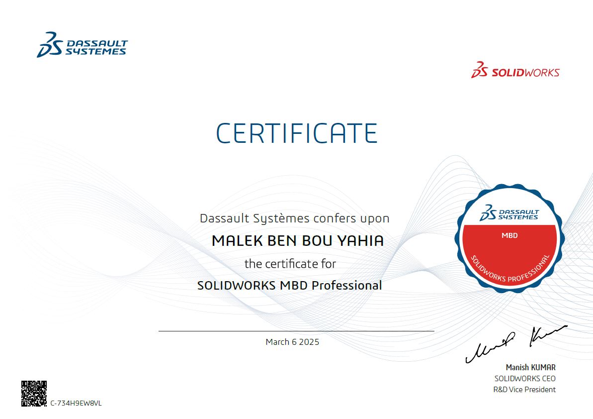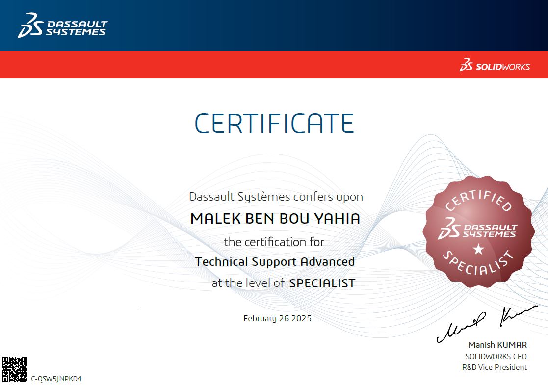 • Support and train students and engineers both academic and in industries SOLIDWORKS fundamentals with different modules such Mechanical design, Sheetmetal design, surfacing, drawings generating and numerical simulation.